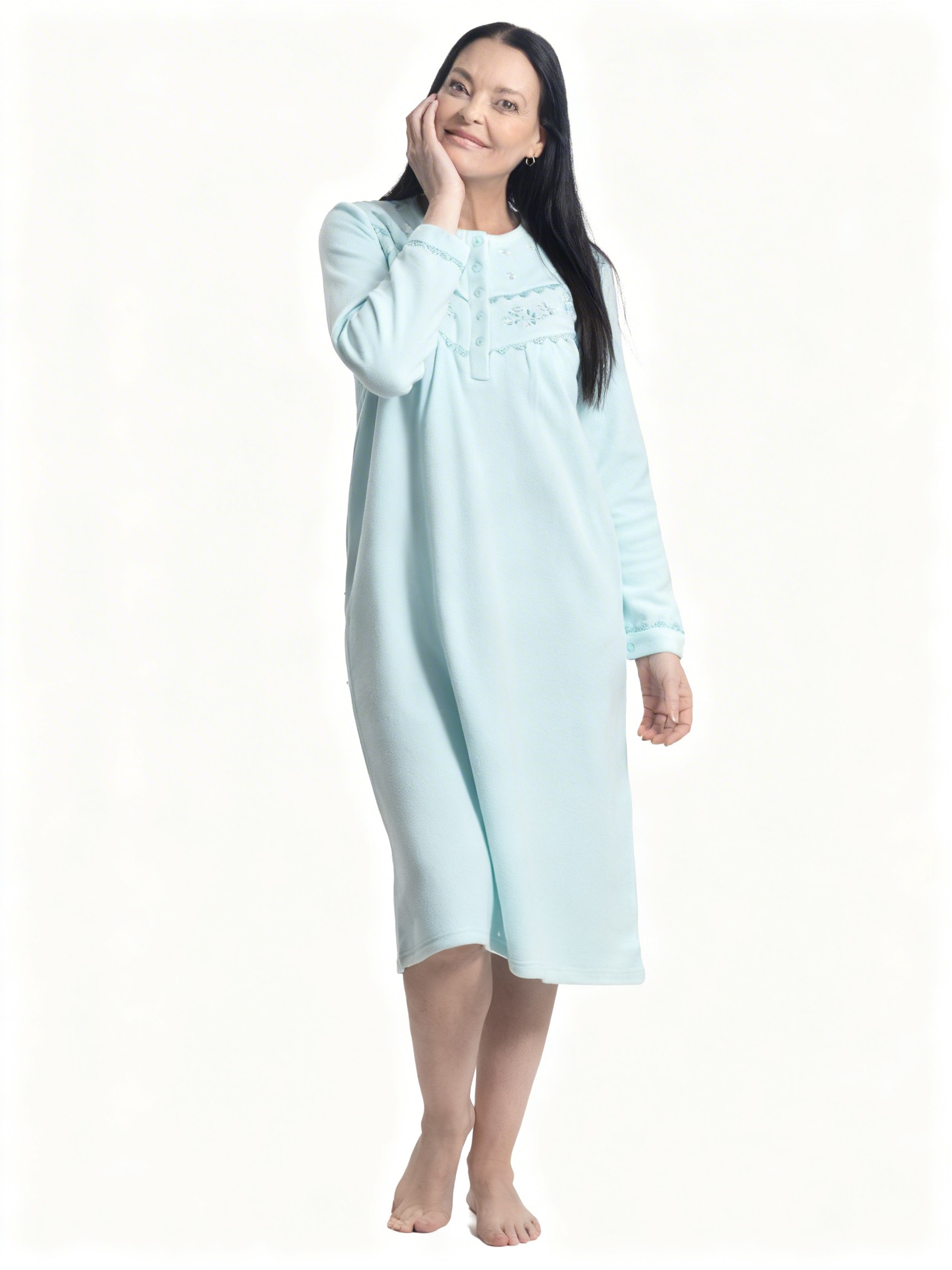 ¿Es posible sentirse liviana y abrigada al mismo tiempo? La respuesta es un rotundo sí gracias a la estructura del micropolar. A diferencia de las lanas pesadas, la Camisa micropolar liso con bordado | Calidez y Suavidad ofrece un volumen mínimo con una protección máxima. En Lynette Chile valoramos esta característica del modelo SKU 125, ya que permite una libertad de movimiento total dentro de la cama. No hay nada más molesto que sentirse atrapada por capas de ropa pesada; con MON AMOUR, el movimiento fluye con naturalidad.