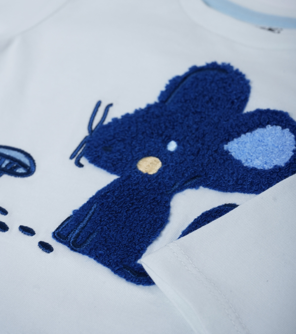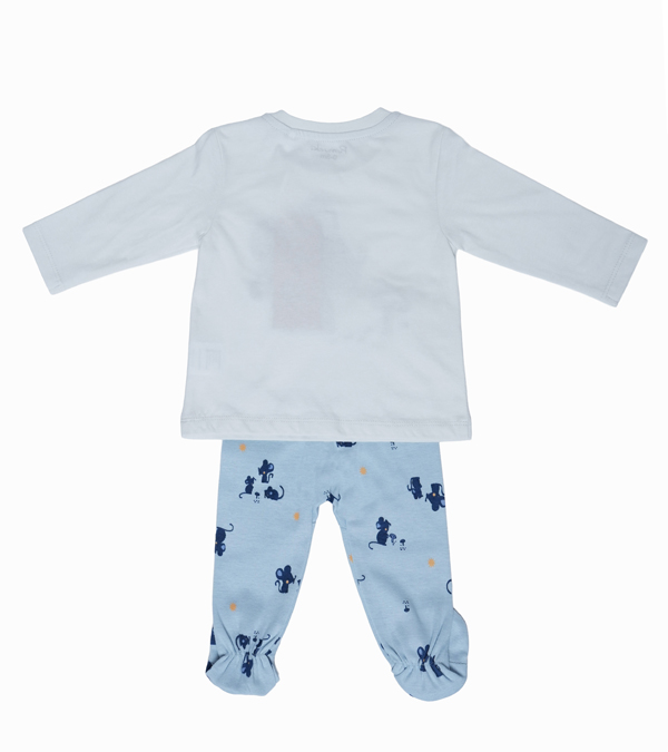 Este adorable Conjunto Algodón Ratoncito Bebé está confeccionado en 100% algodón, garantizando la máxima suavidad sobre la delicada piel de tu bebé. El estampado y bordado de ratoncitos aporta ese toque de ternura que hace que cada momento sea especial. Su cuello redondo y manga larga brindan la protección ideal mientras mantienen la comodidad durante todo el día.