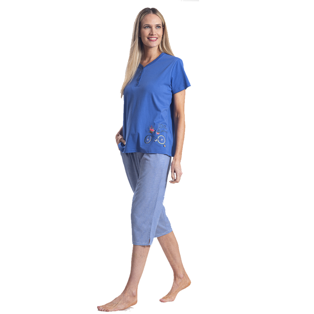 Pijama Algodón Capri Con Botones Est. Bicicleta | Confort Diario Disponible también en Mercadolibre.cl, Falabella.com.cl, Ripley.com y Paris.cl
