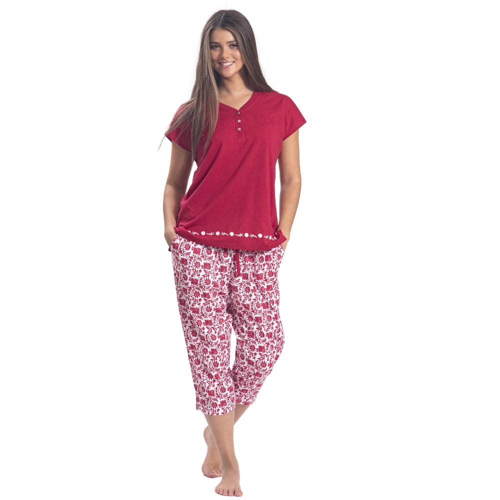 El pijama algodón capri estampado elefantes combina un diseño relajado con un toque lúdico que despierta sonrisas. Cada detalle, desde su top de manga corta hasta el pantalón capri, está pensado para ofrecer una experiencia de descanso ligera y fresca. Porque dormir bien no solo es importante, también puede ser una experiencia placentera y llena de estilo.