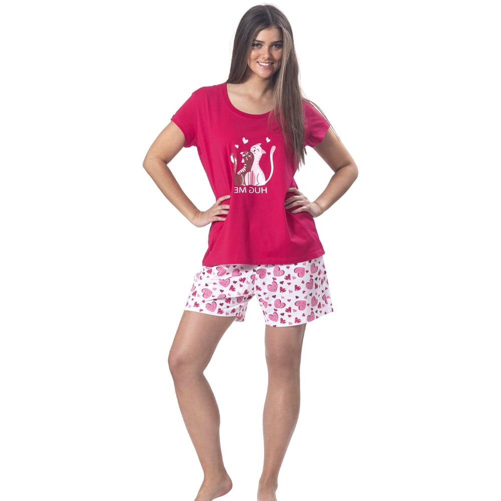 El conjunto incluye una polera de manga corta con estampado de gatitos y un short cómodo, ideales para quienes buscan prendas livianas y transpirables que acompañen las noches cálidas. Su diseño clásico, con un toque tierno y femenino, transmite calma y armonía desde el primer momento en que lo usas.