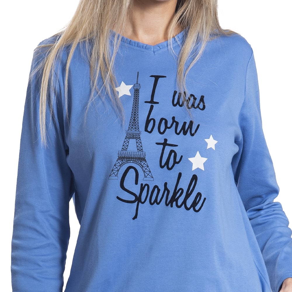 Este pijama largo con cuello en V y pliegues se adapta fácilmente a cualquier estación del año. Es perfecto para disfrutar una noche tranquila, leer un libro o compartir un café temprano en la mañana. Su diseño versátil te acompaña sin limitar tus movimientos, brindándote la libertad de sentirte cómoda y segura.