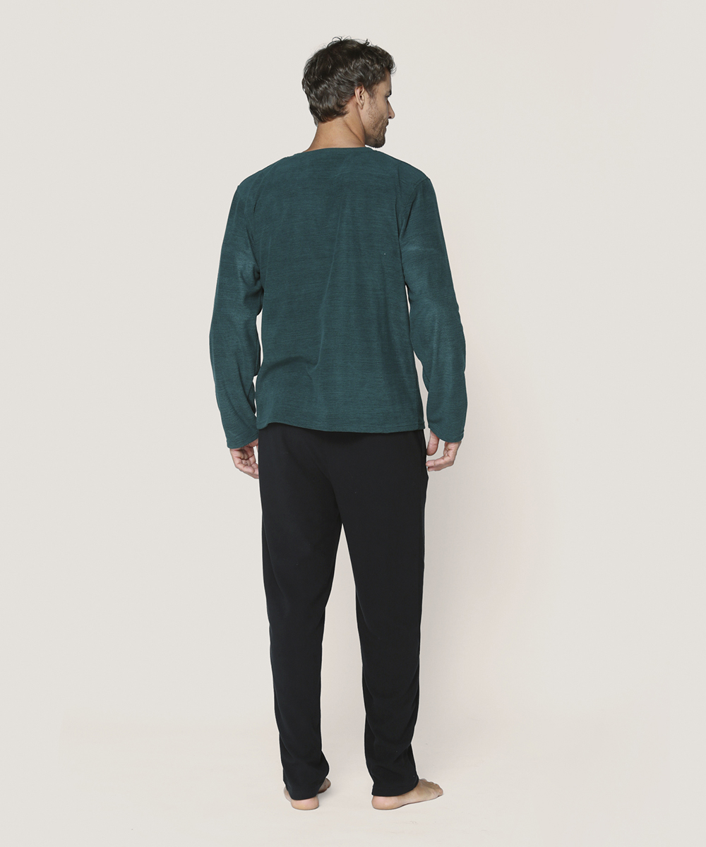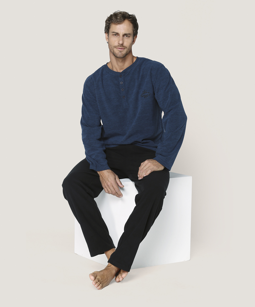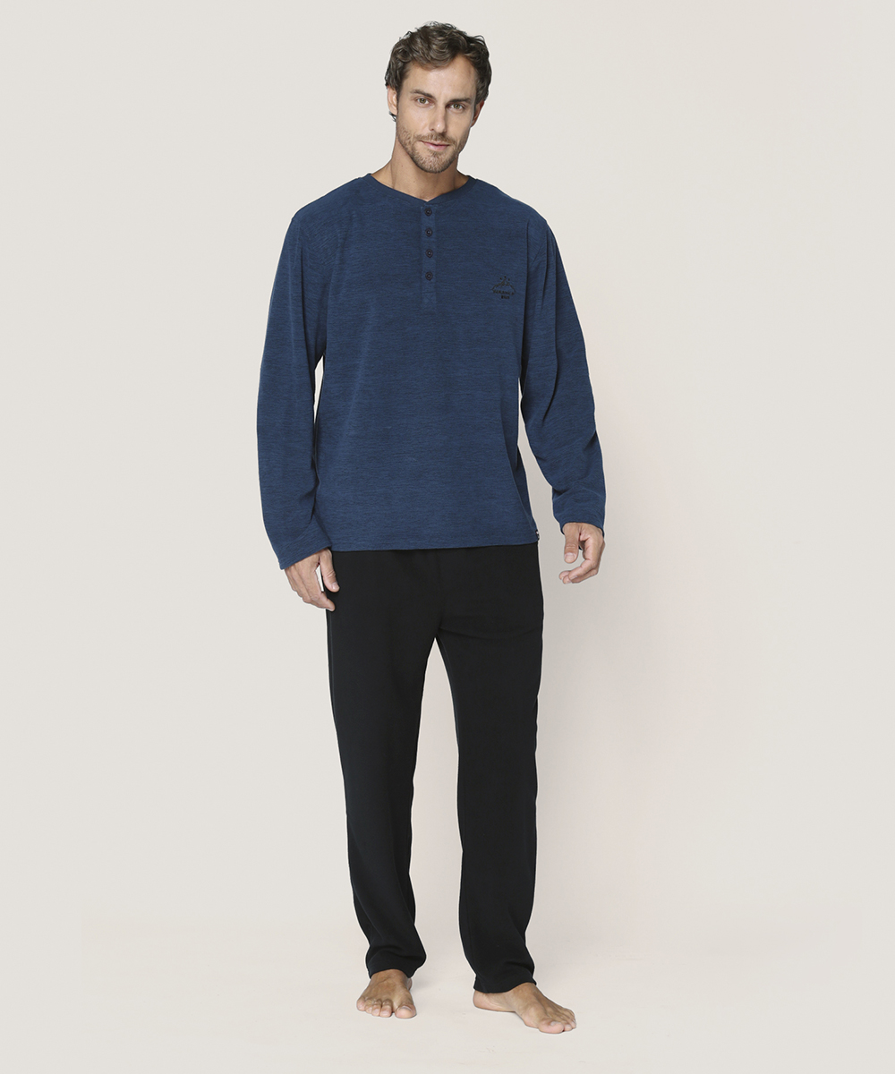 Pijama micropolar para hombre con polera manga larga, pantalón ajustable y bolsillos. Comodidad y diseño perfecto. Lynette Chile