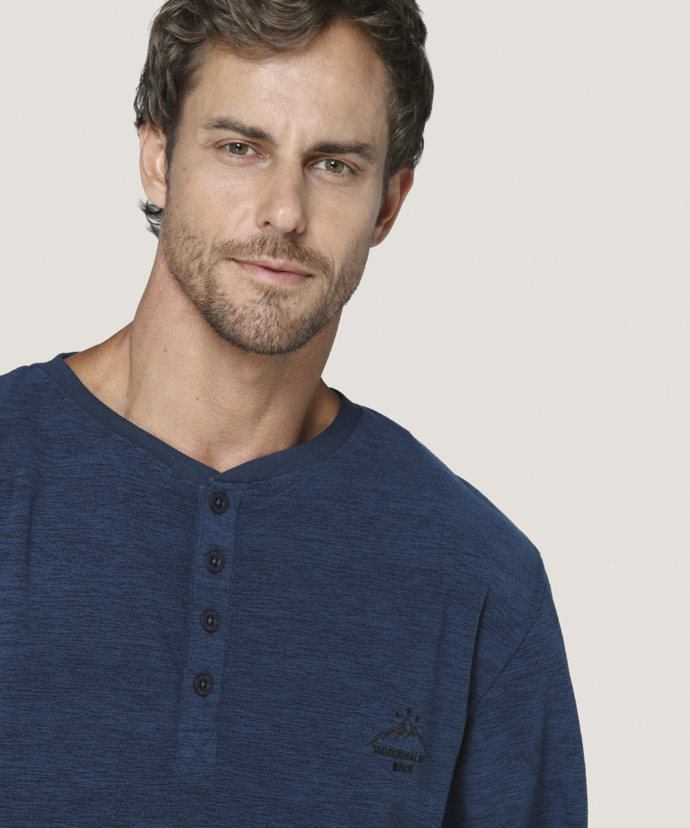 Este pijama micropolar cuenta con una polera de manga larga con botones que te permite ajustar la ventilación según tu comodidad. El diseño incluye un pantalón con cinturón ajustable que se adapta perfectamente a tu figura, proporcionando la flexibilidad que necesitas para moverte libremente. Los bolsillos funcionales añaden ese toque práctico que todo hombre busca, incluso en su ropa de descanso.