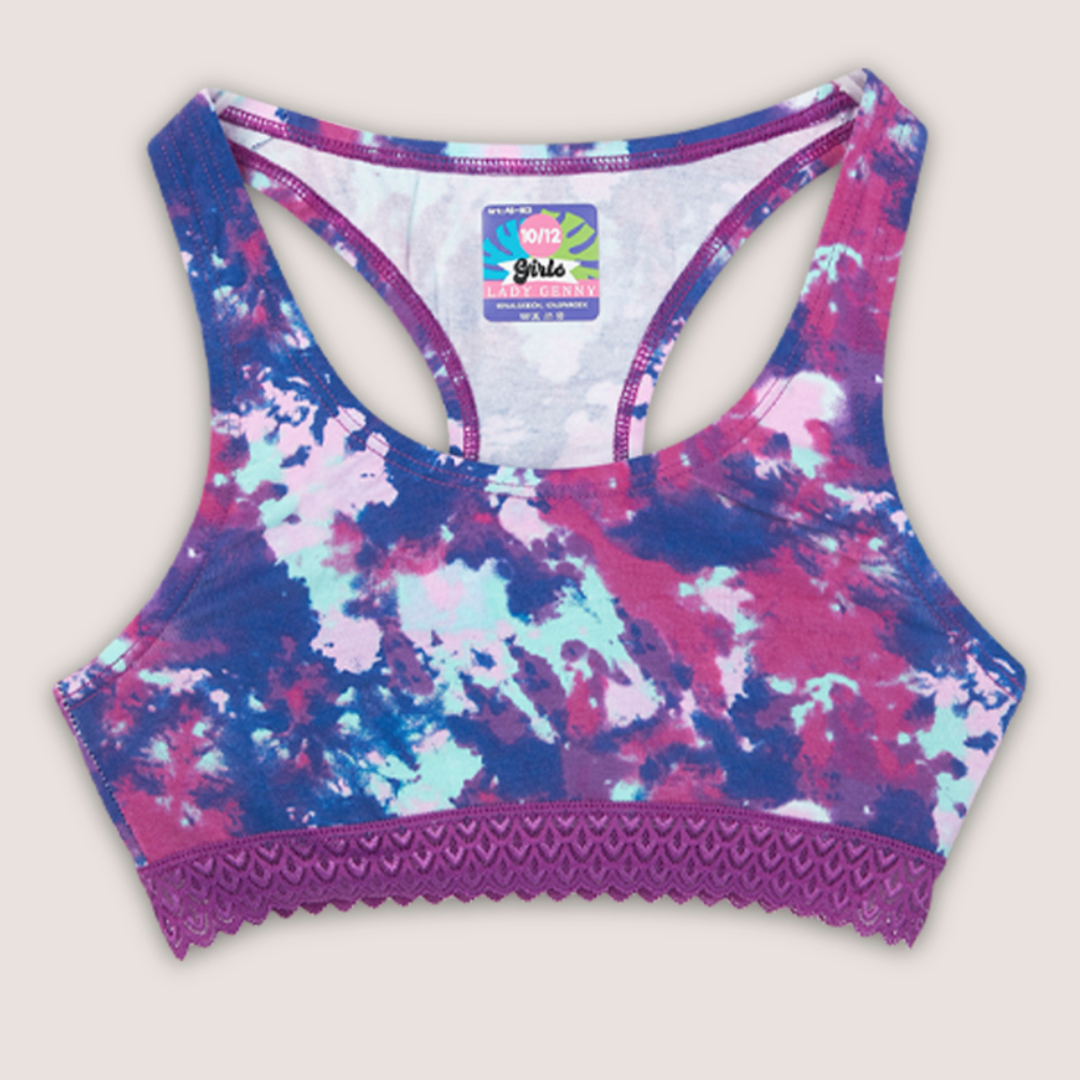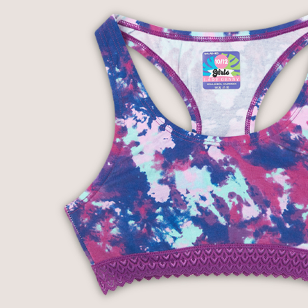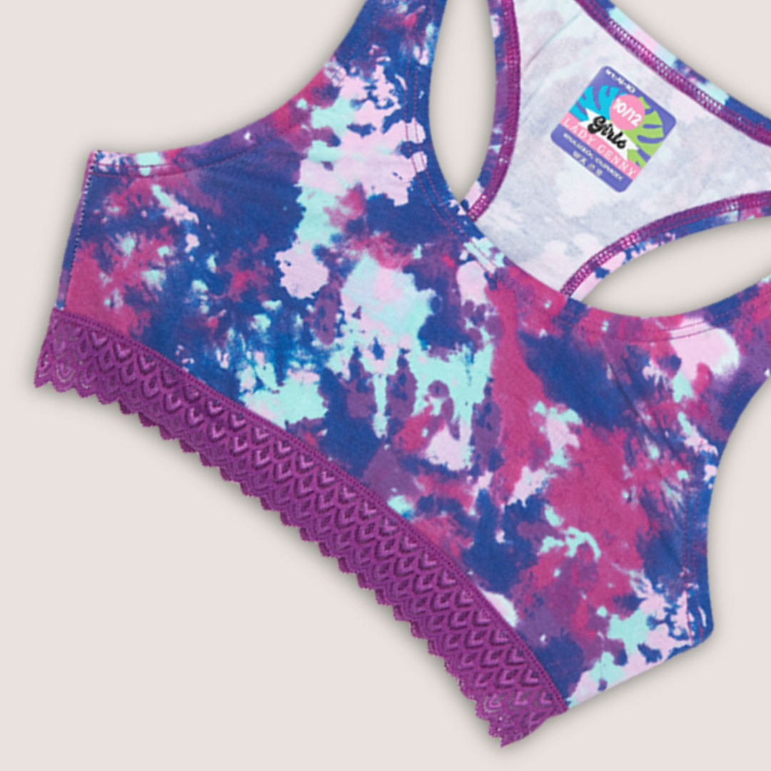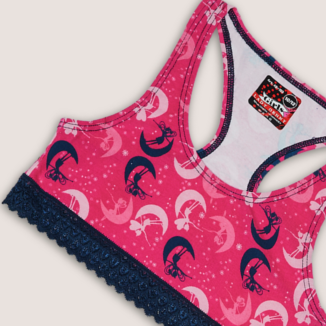 Top de Algodón Estampado con Encaje: espalda deportiva y encaje elasticado en el contorno, ideal para niña. Úsalo con la pantaleta AC-183 en Lynette Chile